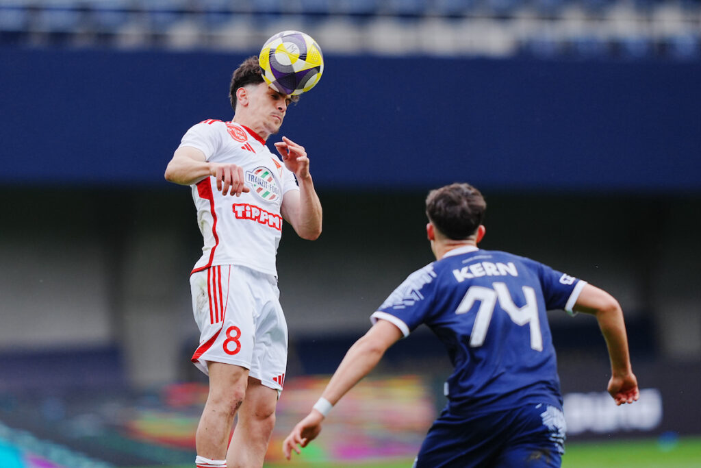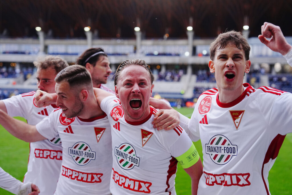 DVSC continued to dominate, and in the 22nd minute, after winning the ball, Balázs Dzsudzsák fired a powerful shot just wide of the goal. A minute later, Donát Bárány won possession inside the penalty area and was brought down by Golla. Our national team squad striker confidently converted the clear penalty, scoring his 12th league goal of the season (0–1). In the 30th minute, completely out of the blue, Puskás equalized: after a cross from the left by Samal, Lukács flicked the ball into the net from 7 meters (1–1). In the remaining time before the break, Donát Bárány first threatened with a header, which went over the bar, then Benedek Erdélyi made a fine save to deny the close-range attempt of Lukács. Finally, the home goalkeeper also saved Tamás Szűcs’s header, so the score remained even.
